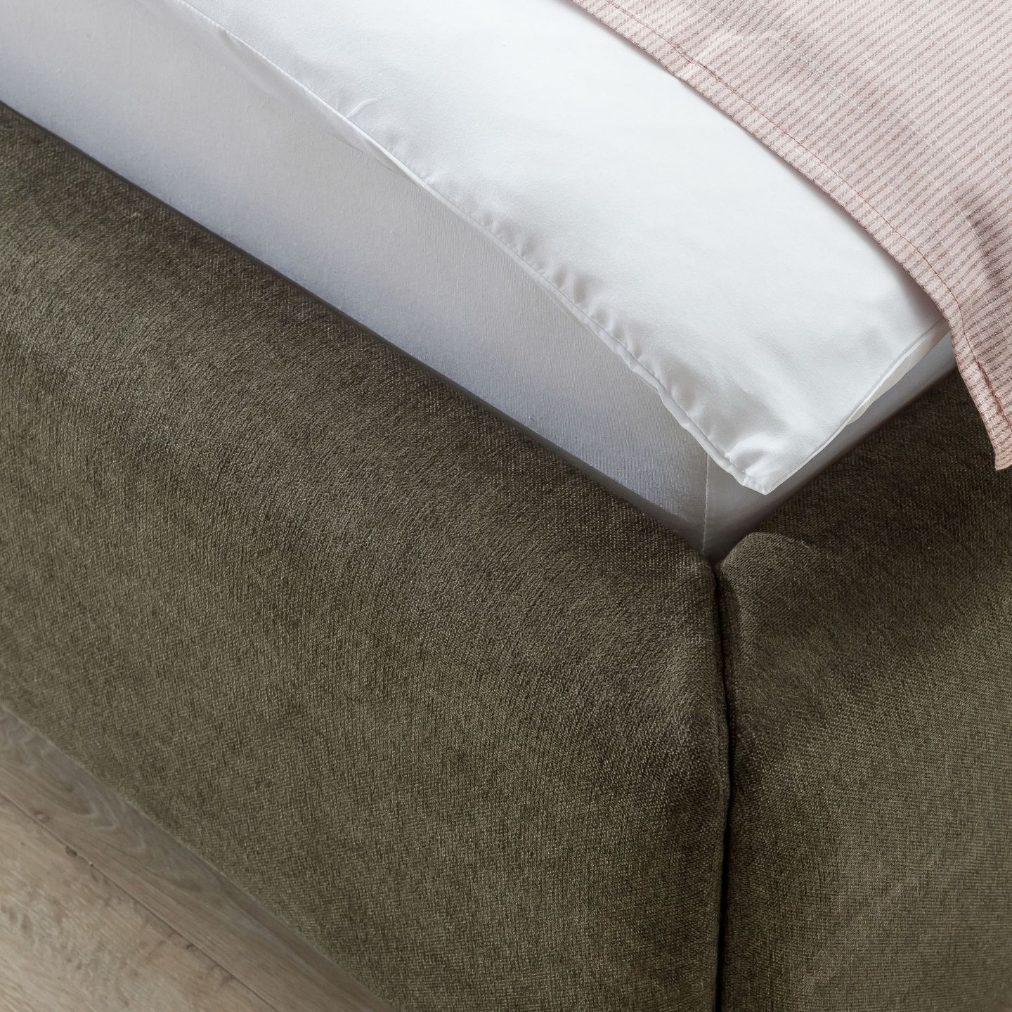 Die Füße des Bettes unterstreichen die elegante Erscheinung zusätzlich. Brinkhaus bietet hierfür mehrere Varianten an: von dezenten Metallfüßen über massive Holzfüße bis hin zu Sockellösungen, die dem Bett eine fast schwebende Optik verleihen.