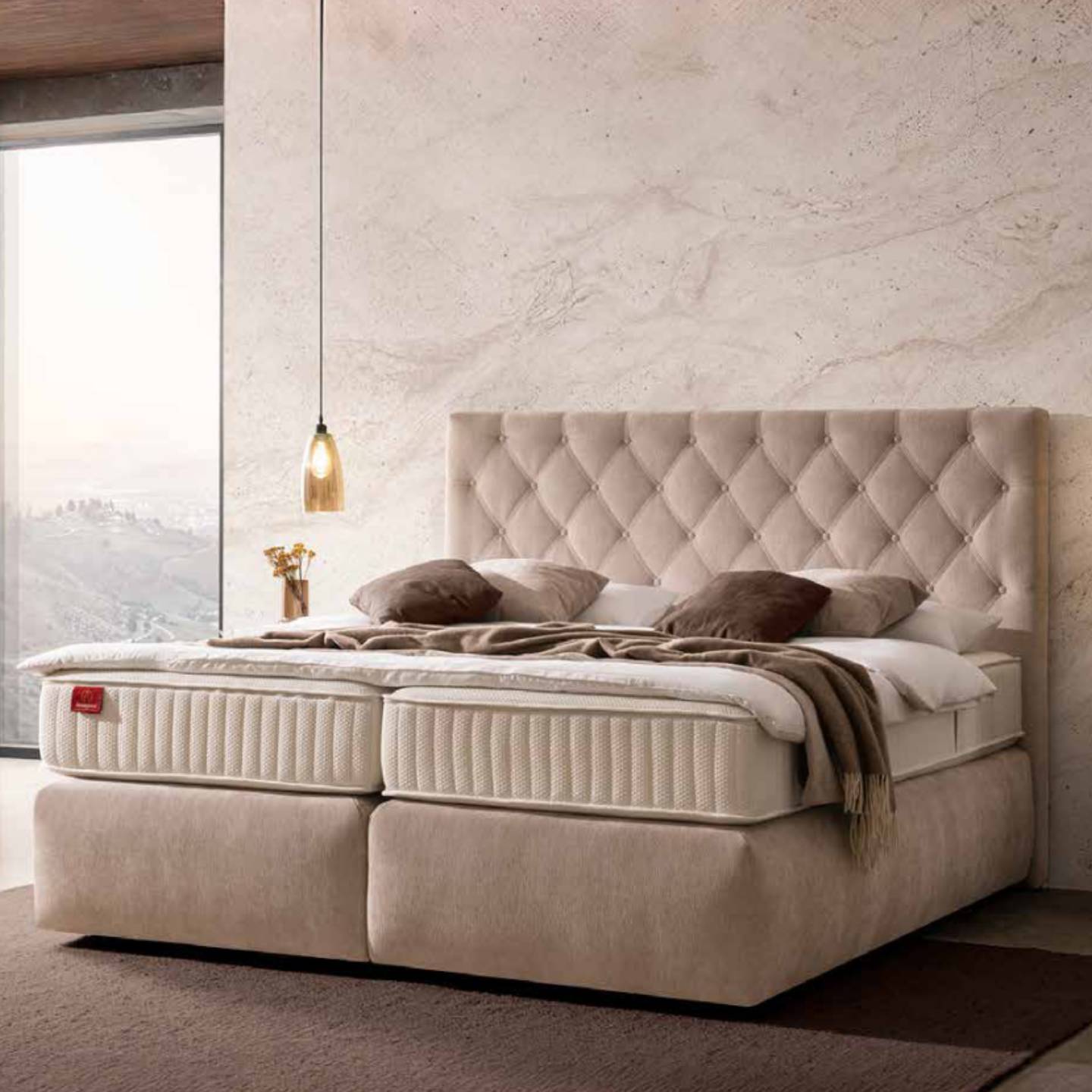 Das Brinkhaus Bett Greenwich ist als vollwertiges Boxspringbett konzipiert, bei dem Box, Matratze und optionaler Topper perfekt aufeinander abgestimmt sind. Die Unterkonstruktion besteht aus einer stabilen Box mit integriertem Federkern, die das typische federnde Liegegefühl eines Boxspringbettes erzeugt.