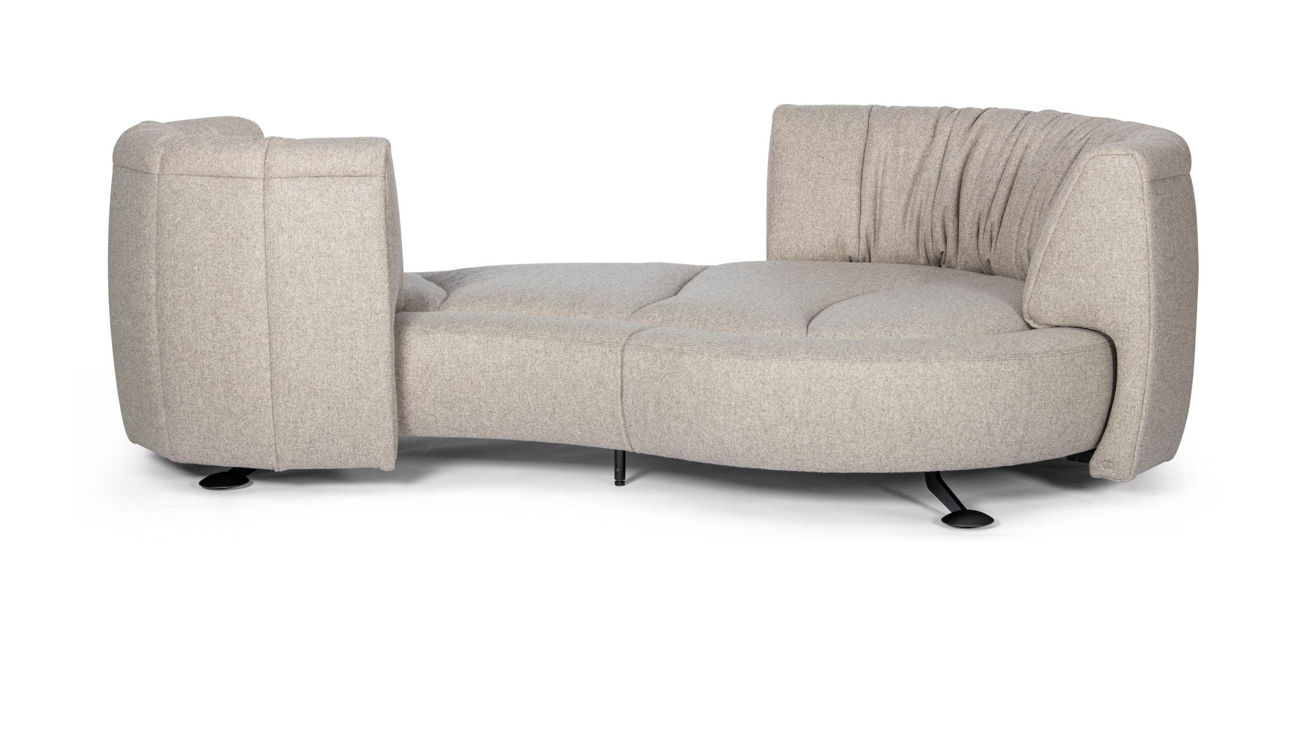 Die Couch ist ein wahrer Blickfang: Die filigranen Rundungen, die schlanken und zierlichen Edelstahlfüße, der skulpturale Korpus und die feinen Absteppungen machen die Ästhetik des Sofas aus.