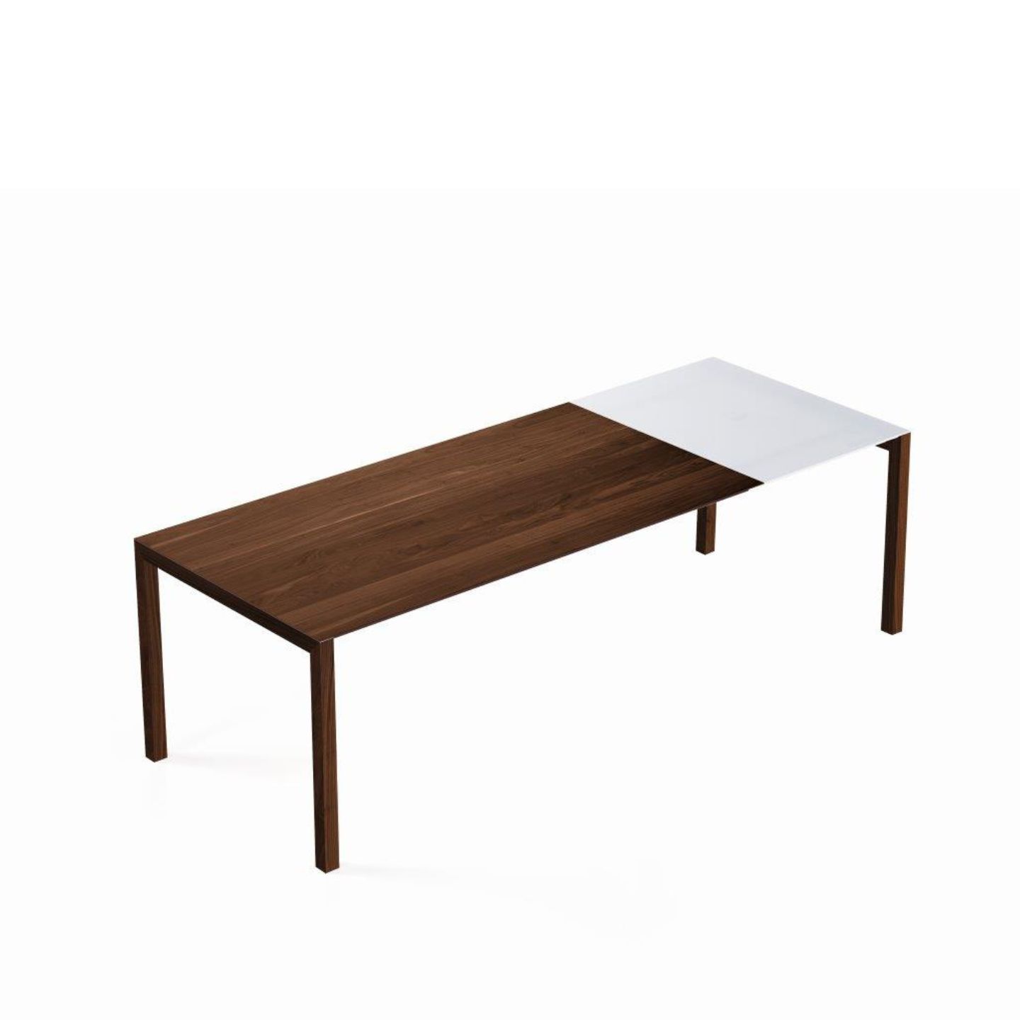 Den Esstisch Prato können Sie in zahlreichen Größen bestellen – entweder in fixer Variante oder mit optionaler Klappeinlage.