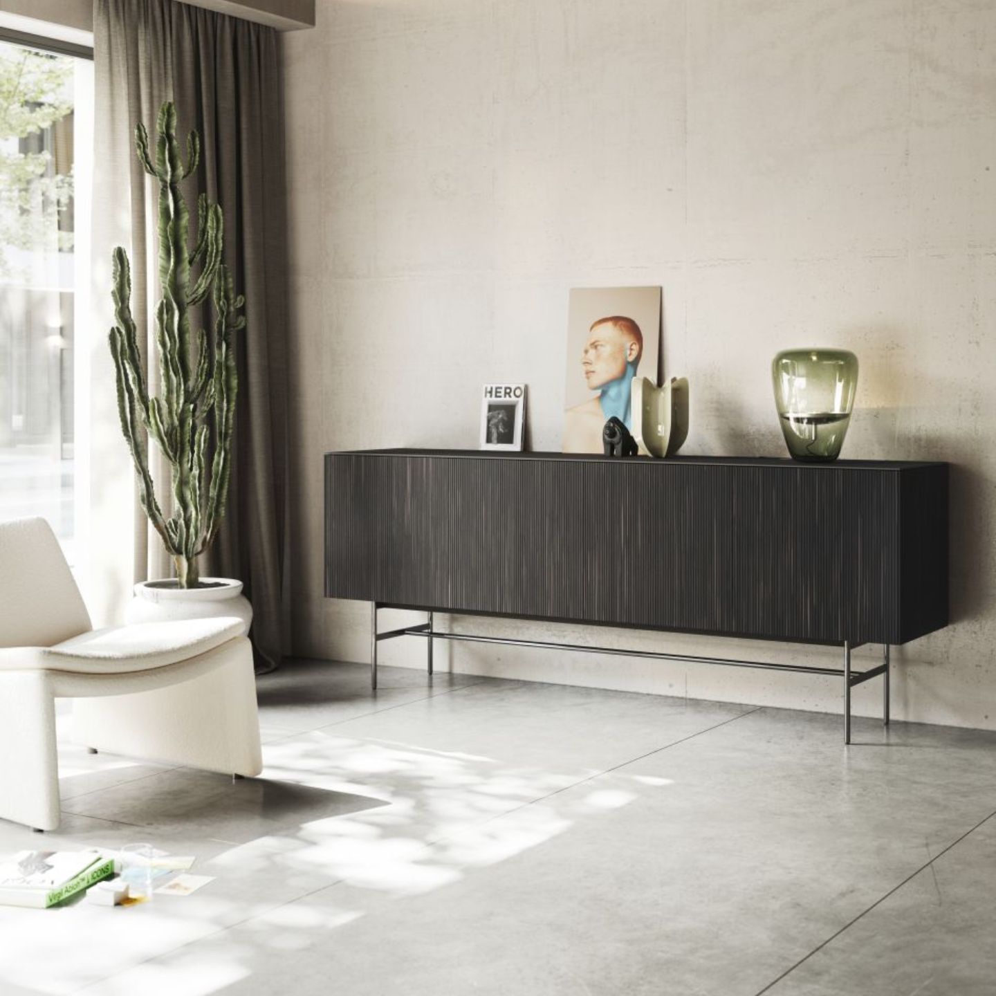 Besonders reizvoll ist, dass die magnetisch befestigten Blenden dem Möbel eine außergewöhnliche Wandlungsfähigkeit verleihen. Ihr Sideboard bleibt dadurch langfristig aktuell und passt sich an neue Wohnideen an, ohne seine hohe Wertigkeit zu verlieren.