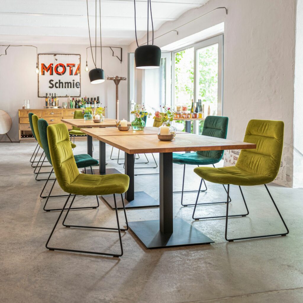 Die Art des Gestells und die Wahl der Armlehnen tragen zur Ästhetik eines Stuhls bei.