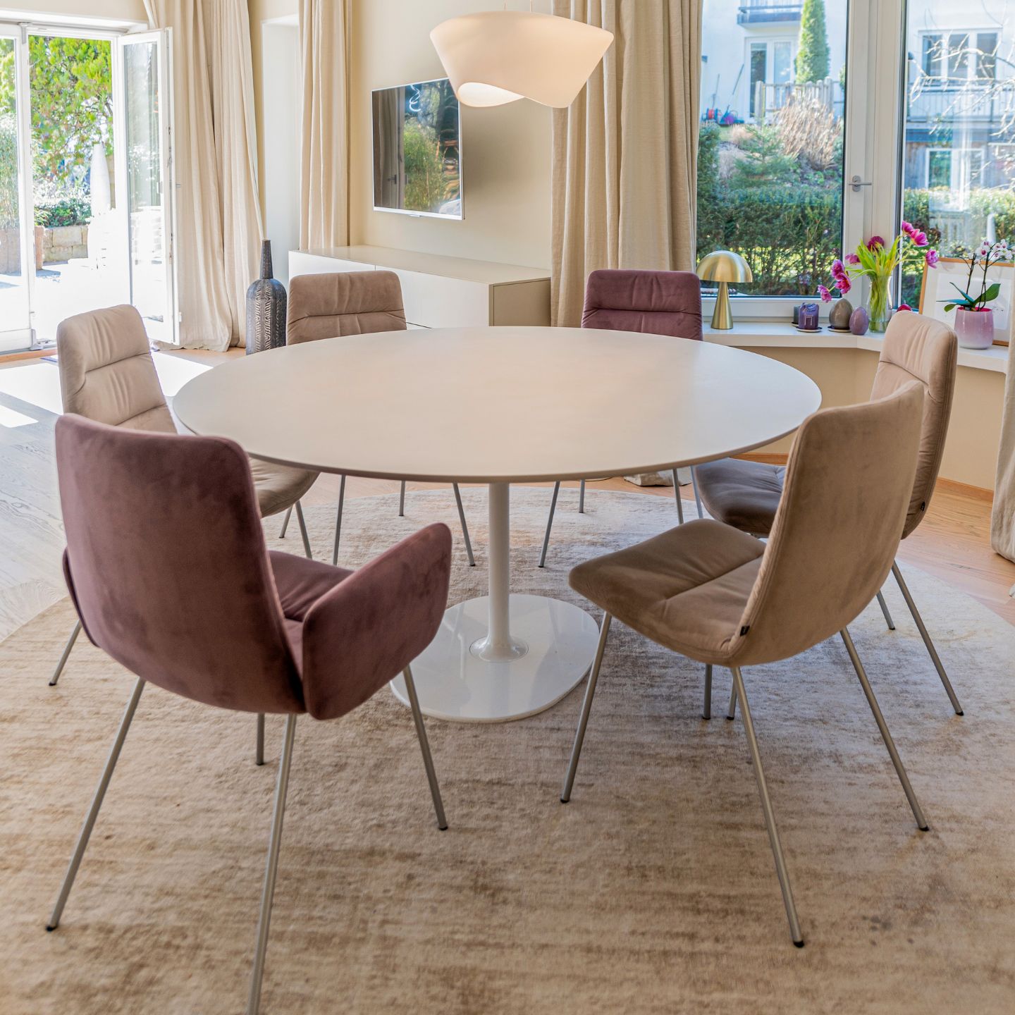 Die angenehm weiche Haptik mit leichter Veredelung verleiht dem Stuhl Arva Light einen wohnlich lässigen Look mit einem Hauch von Eleganz.