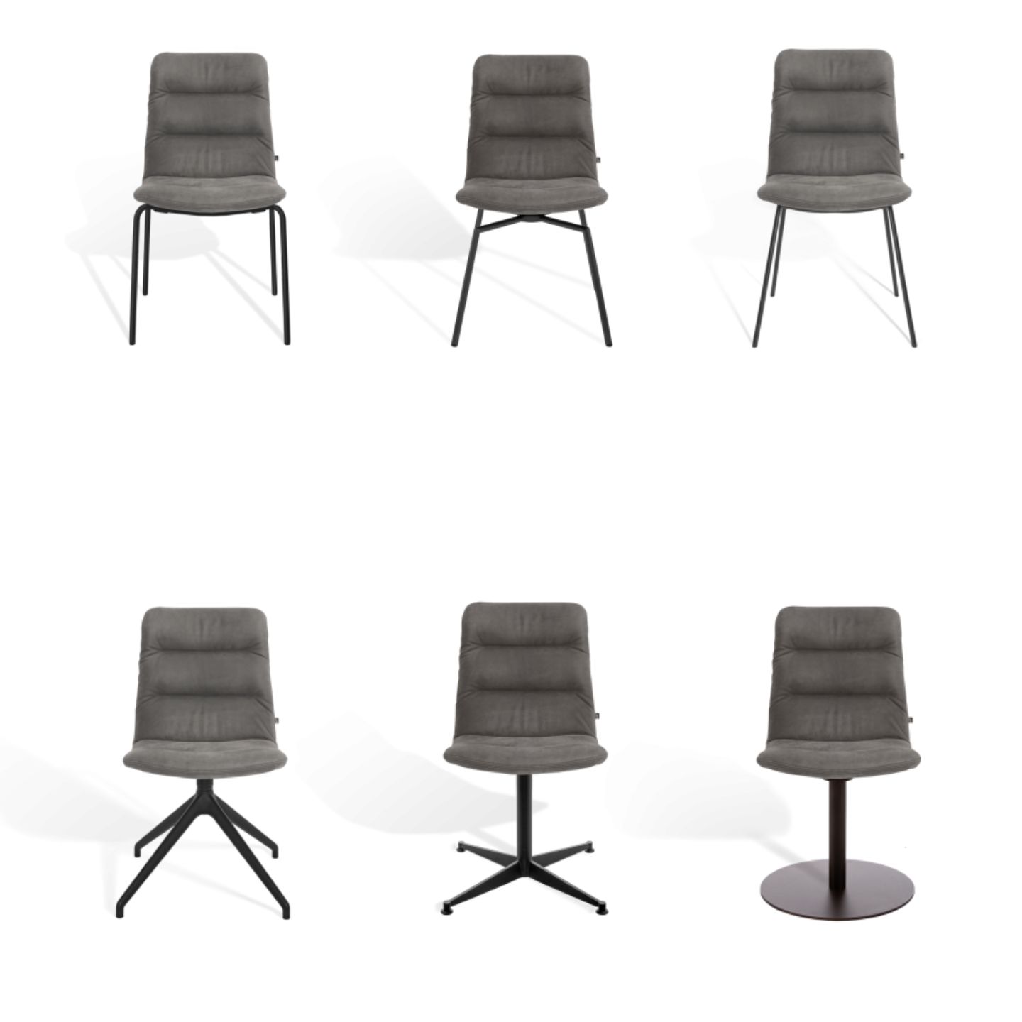 Arva Light hält zahlreiche Konfigurationen bereit: Der Stuhl kann mit oder ohne Lehne, mit sechs verschiedenen Gestellen und einer Vielzahl an Stoff- und Lederbezügen bestellt werden.