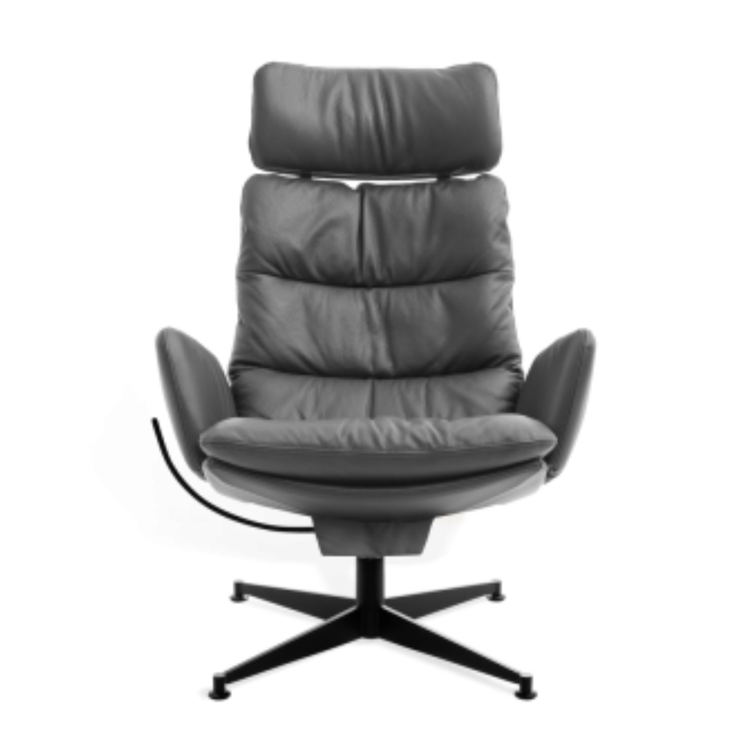 Die angenehme Wippfunktion, die großzügige Polsterung der Schale und der Armlehnen sowie die gemütliche Kopfstütze sorgen für ein exzellentes Sitzgefühl. Kombinieren Sie den Lounge Sessel mit dem passenden Kissen, das Sie entweder für den Lenden- oder Nackenbereich nutzen können, und mit dem Ottomanen, auf dem Sie Ihre Beine entspannt ablegen. Genießen Sie ein Maximum an Komfort.