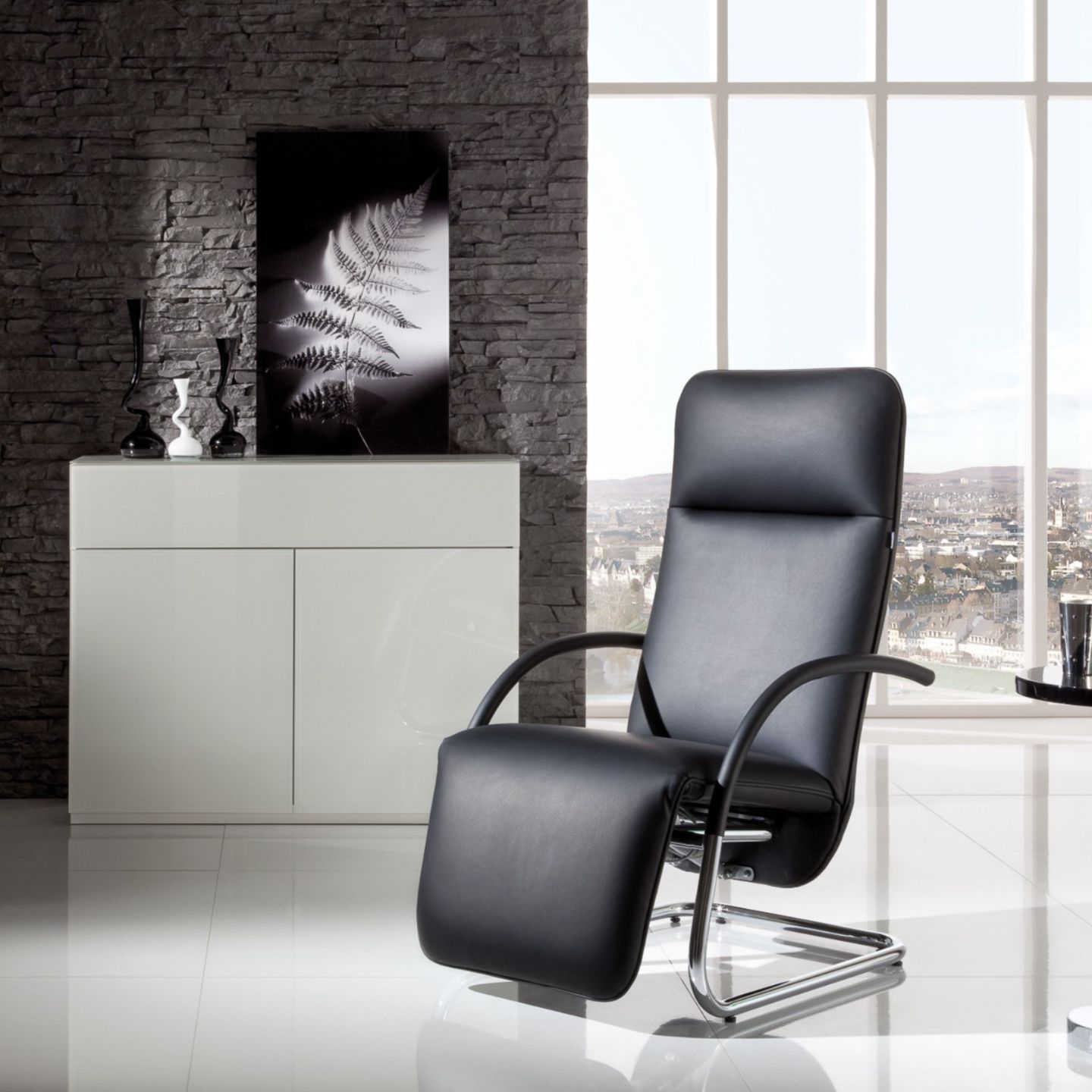 Zusätzlich können Sie den hochglanz-verchromten Sternfuß auswählen, sodass Ihr neuer Relaxsessel drehbar ist.