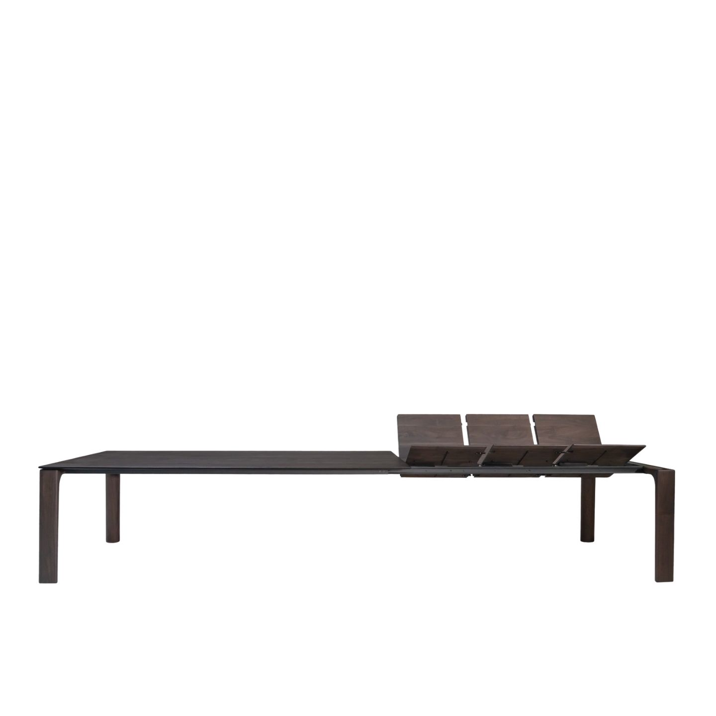 Was Campa so besonders macht, ist die Balance aus Leichtigkeit und Präsenz. Die schmal wirkenden Kanten und die weichen Radien geben dem Tisch eine moderne, fast „luftige“ Anmutung. Gerade bei Massivholz ist diese Wirkung anspruchsvoll, weil Materialstärke und Statik schnell wuchtig erscheinen können. Campa löst das über Proportion, Detail und eine Konstruktion, die Stabilität auch dann liefert, wenn der Tisch ausgezogen ist.