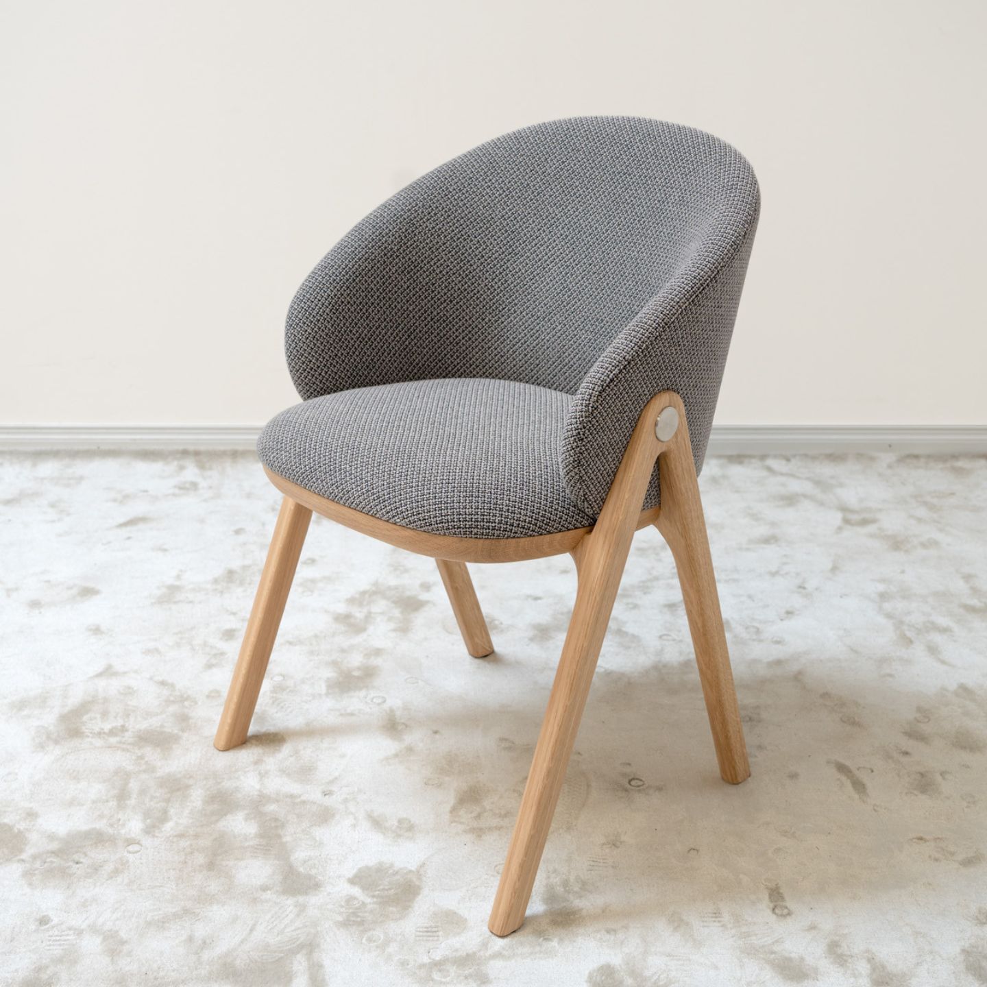 Der Stuhl Rodam Maru bietet eine Synergie aus geschwungenen Linien, präzisen geometrischen Formen und technischen Elementen – inspiriert von den kreisenden Bewegungen eines Zirkels. Dieses Konzept erkennt man im Spannungsfeld zwischen der weichen, anschmiegsamen Sitzschale und dem dynamischen, grafischen Charakter des Gestells. Besonders markant: die intelligente Verbindung der Streben und die nahtlosen Übergänge von Massivholz zu Oberstoff.